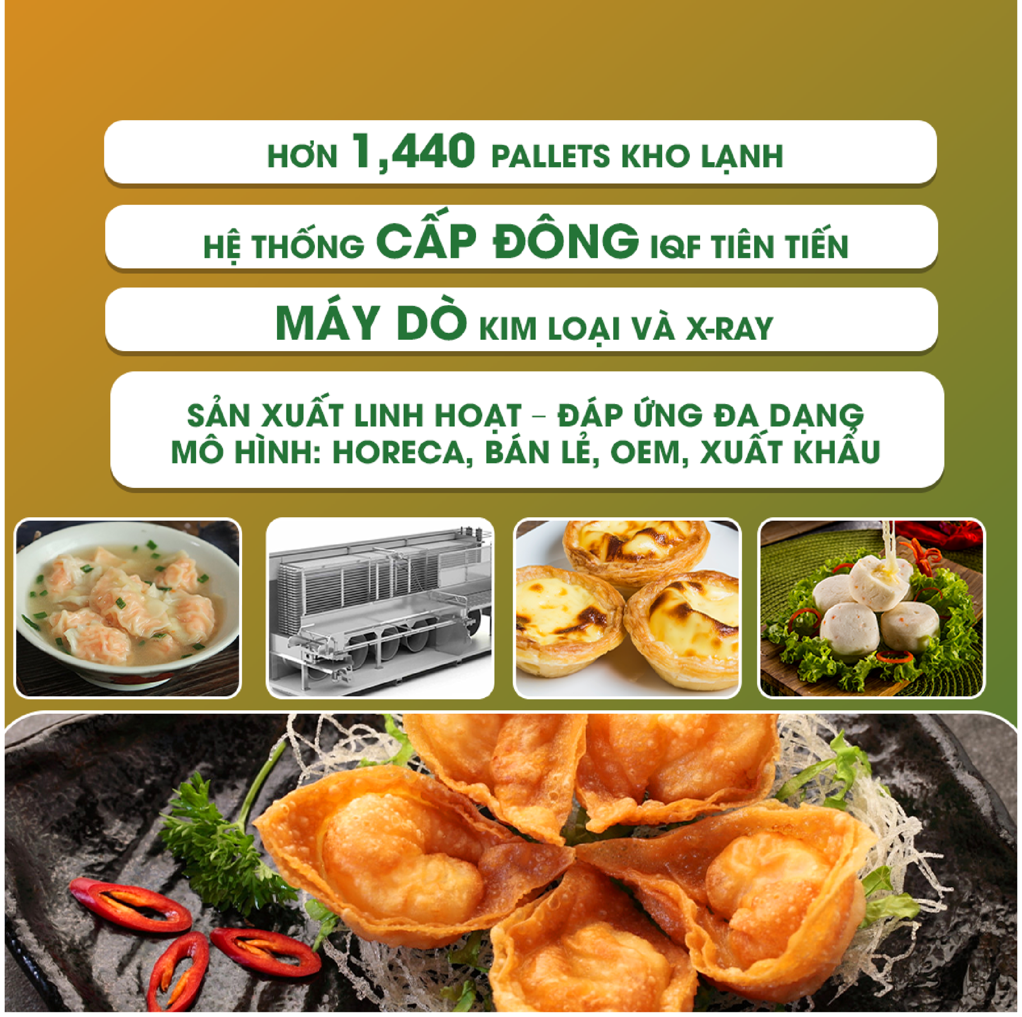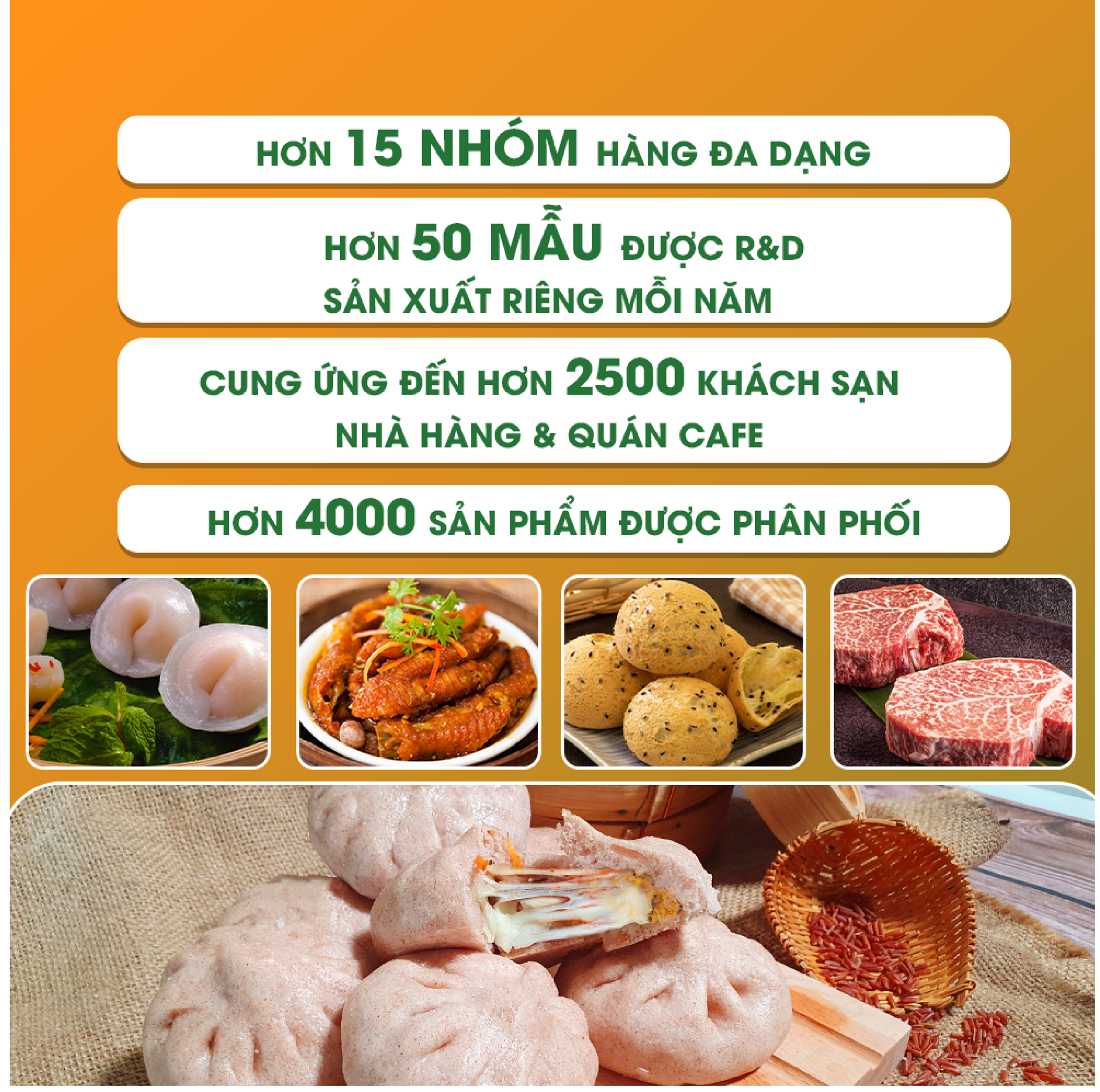 Chúng tôi tin rằng: “Không chỉ sản xuất thực phẩm, mà còn đồng hành cùng bạn kiến tạo sản phẩm mang tính khác biệt, tối ưu chuỗi cung ứng và thúc đẩy lợi nhuận dài hạn.”