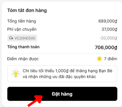 Kiểm tra thông tin thanh toán và chọn Đặt hàng để hoàn tất