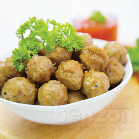 - Bò viên có màu nâu sậm đặc trưng của thịt bò khi làm chín hòa với màu tiêu đen