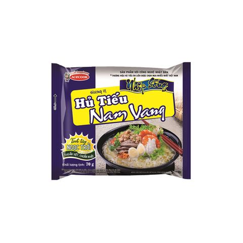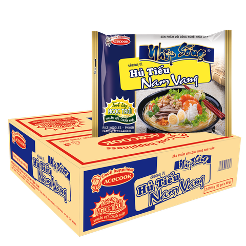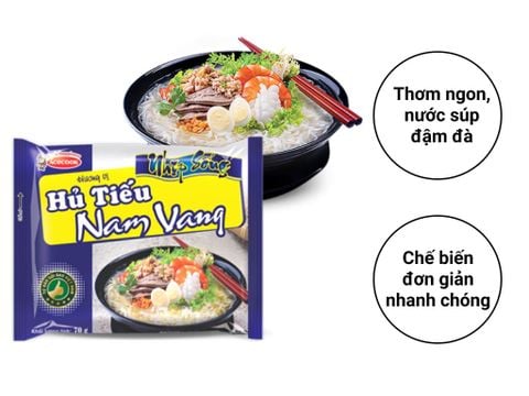 ĐỊNH LƯỢNG: 70g THÀNH PHẦN: Gạo, tinh bột, chất làm đầy, gia vị, rau củ MÔ TẢ SẢN PHẨM: Hủ tiếu Nam Vang Nhịp Sống gói 70g là bữa ăn cực tiện lợi và thơm ngon của thương hiệu hủ tiếu Nhịp sống. Hương vị Nam Vang đậm đà thấm đều trong từng sợi hủ tiếu dai ngon cực đã cùng mùi hương hấp dẫn lôi cuốn không thể chối từ HƯỚNG DẪN CHẾ BIẾN: Cho vắt hủ tiếu, gói súp, gói dầu vàgói rau sấy vào tô. Chế nước sôi vào khoảng 400 ml, đậy nắp lại và chờ trong 3 phút. Trộn đều và dùng được ngay BẢO QUẢN: Bảo quản nơi khô ráo, thoáng mát, tránh ánh nắng trực tiếp. Không để gần hóa chất hoặc sản phẩm có mùi mạnh HSD: 8 tháng