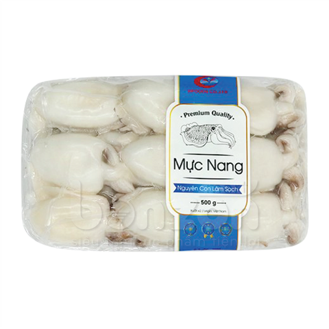 MÔ TẢ SẢN PHẨM: Mực nang nguyên con có màu trắng sữa, thớ thịt dày, có vị ngọt, thơm và dai giòn. Mực chứa nhiều protein, Canxi, Photpho,… cung cấp đầy đủ chất dinh dưỡng cho cơ thể