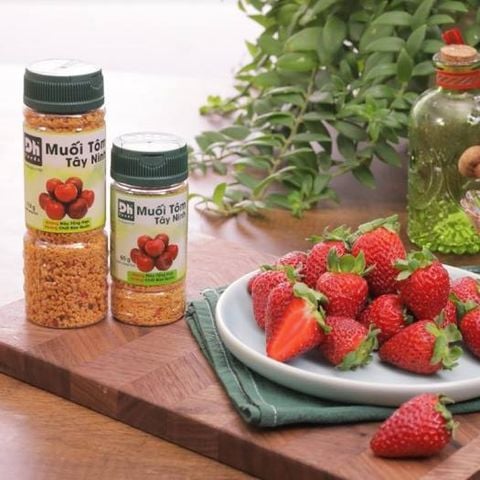 THÀNH PHẦN: Muối I-ốt, bột tôm, ớt, tỏi, gia vị, phẩm màu tự nhiên