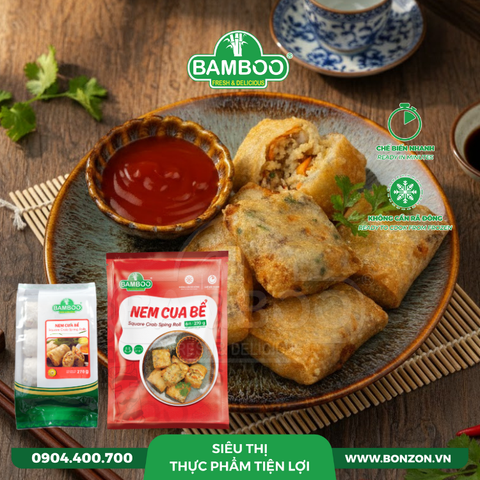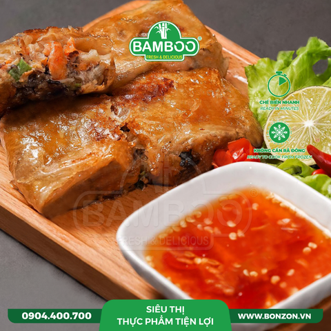 MÔ TẢ SẢN PHẨM: Vỏ bánh tráng giòn tan cùng với sự béo bùi của lớp nhân bên trong từ thịt cua kết hợp với thịt heo, mộc nhĩ cùng các nguyên liệu và pha trộn nhiều hương vị đặc trưng