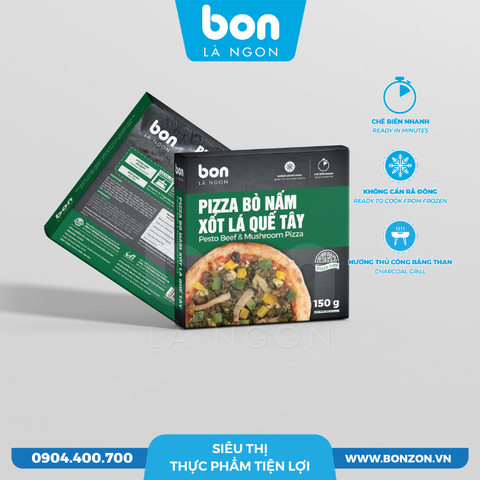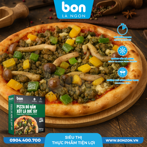 - Topping thịt bò kết hợp với nấm hòa quyện với xốt lá quế tây đặc trưng tạo nên mùi vị hấp dẫn cho sản phẩm